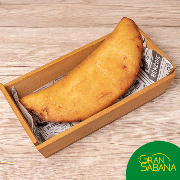 Disfruta de la Empanada de Pollo Mechado. Su relleno de pollo mechado cocinado en un suave sofrito casero la hace irresistible. Una empanada de maíz frita, perfecta para un almuerzo rápido o una merienda con auténtico sabor venezolano en Barcelona.